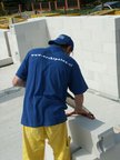 "Budowa ścian "Stanisława jest już zaawansowana w 70%. Wokół zrobiło się trochę biało bo bloczki nieco pylą. Dlatego gdy wracam z budowy ubranie mam siwe z czego nie jest zadowolona żona. Teraz jednak będę się rpzebierał na budowie w granatową koszulkę którą dostałem tak samo jak ekipa budowlana od pracowni "Archipelag" - opowiada laureat konkursu "Dom marzeń Polaka" pan Tomasz Bąk.