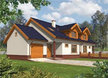 Bryła "Melki" jest tradycyjna z nisko schodzącym dwuspadowym dachem wzbogaconym dużymi lukarnami i podcieniami - dla takiego domu łatwo będzie znaleźć odpowiednie sąsiedztwo w którym świetnie będzie wyglądać zarówno na przedmieściu jak i na wsi.