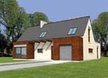 Klementynka. Dom parterowy z poddaszem nadającym się do późniejszego zagospodarowania i wbudowanym garażem niepodpiwniczony przeznaczony dla 3-4 osobowej rodziny. Strefę dzienną stanowi pokój dzienny z jadalnią oraz kuchnia. Strefa nocna to trzy sypialnie i łazienka. Prosta bryła budynku o niewielkiej ilości ścian nośnych daje duże możliwości aranżacji wnętrza. Na strychu po adaptacji można uzyskać ok. 78 m2 powierzchni użytkowej.