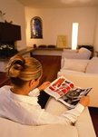 Koniecznie pamiętajmy o umieszczeniu niewielkiego źródła światła za telewizorem - dzięki temu zmniejszymy kontrast pomiędzy ciemnym pokojem a ekranem a wzrok mniej się będzie męczył. Do lampki za odbiornikiem wkręćmy żarówkę Relax której łagodne światło będzie naturalnie rozświetlało przestrzeń za odbiornikiem.