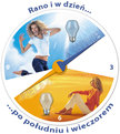 Słońce ma swoje sposoby żeby regulować nasz wewnętrzny cykl. W zależności od pory dnia zmienia się nie tylko intensywność docierającego do nas światła ale również jego barwa. To co odbieramy jako zwykłe białe światło w rzeczywistości stanowi spektrum barw: czerwonej pomarańczowej żółtej zielonej niebieskiej granatowej i fioletowej. I tak w jasnym pobudzającym do działania przedpołudniowym świetle dominują tony barwy niebieskiej pod wieczór zaś przewagę zdobywają barwy czerwona i żółta. Te kolorystyczne niuanse decydują o naszym samopoczuciu. Dobranie oświetlenia sztucznego pasującego do pory dnia to sposób na "oszukanie" natury.
