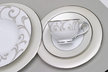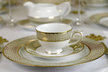 Weselne przyjęcie musi być szykowne i eleganckie. Najważniejszym elementem dekoracyjnym pokoju będzie bez wątpienia stół. Wszystkie elementy dekoracyjne powinny do siebie pasować pod względem kolorystyki faktury i stylu. Jeśli cenisz klasyczną elegancję możesz wybrać zestaw obiadowy Jewel Cream marki Villa Italia. Serwis ten swój urok zawdzięcza białej porcelanie wykończonej złotą koronką. Dekoracja wykonana jest wyjątkowo precyzyjnie i mimo że jest bardzo bogata drobne elementy nadają jej subtelności. Zastawa ta będzie się pięknie prezentować na śnieżnobiałym obrusie. Zastanów się również nad odpowiednimi złotymi dodatkami. Mogą to być na przykład świece których blask podkreśli niezapomnianą atmosferę. Jeśli nie przepadasz za złotem możesz zdecydować się na piękną porcelanową zastawę Madrid marki Villa Italia. Jej naczynia mają klasyczne zaokrąglone kształty a białą porcelanę zdobi elegancka roślinna dekoracja. Brzegi są ręcznie wykończone cienką linią platyny co nadaje kolekcji wyrafinowanej elegancji. Do porcelanowej kolekcji starannie dobierz obrus który podkreśli urok zastawy stołowej. Możesz wybrać materiał w zdecydowanym odcieniu który będzie pięknie kontrastował z bielą porcelany. Dobierz proste w formie szkło i klasyczne sztućce. Nie zapomnij o kwiatach - świeże choć mniej trwałe będą bardziej cieszyć oczy Twoich gości. W zależności od liczby zaproszonych osób możesz oznaczyć miejsca przy stole małymi karteczkami z imieniem i nazwiskiem tak aby Twoi bliscy mogli łatwo odnaleźć swoje miejsce przy stole.