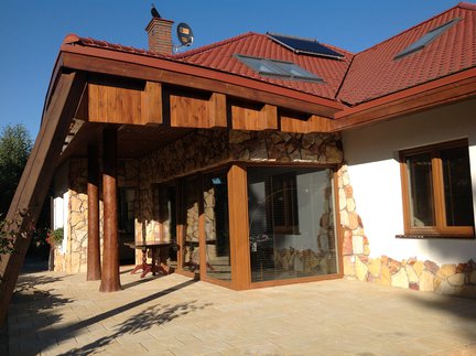 Sandra G2 zwraca uwagę klasyczną, acz niebanalną bryłą. Przez przeszklenia o wyjątkowo rozległej powierzchni, od strony ogrodu, do środka wpada bardzo dużo naturalnego światła rozjaśniającego wnętrze reprezentacyjnego salonu z kominkiem. Obok kuchni zaprojektowano praktyczną spiżarnię, ponadto w strefie dziennej zaplanowano pokój gościnny. Na parterze znajdują się także dwie sypialnie i duża łazienka. Poddasze przeznaczono na strefę nocną.