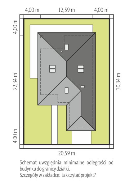 - Minimalne wymiary działki 20.59 x 30.34 m