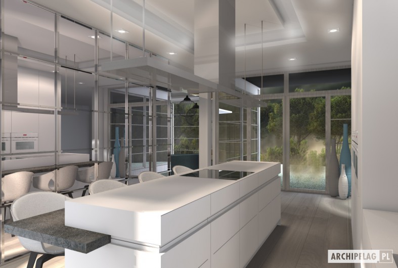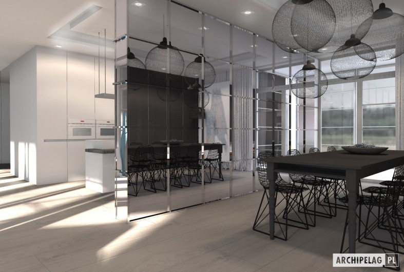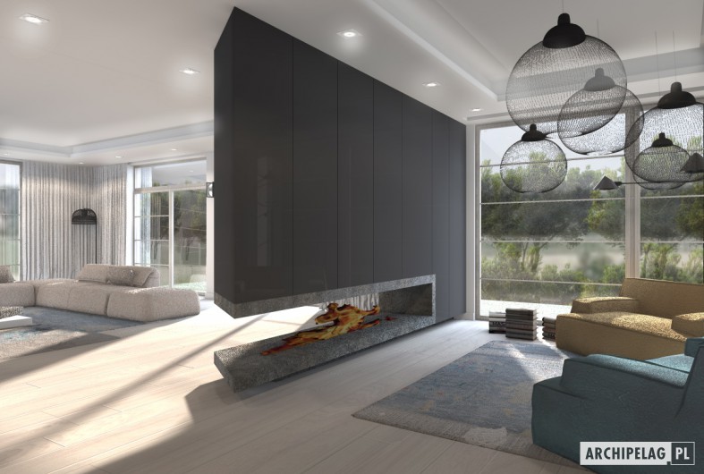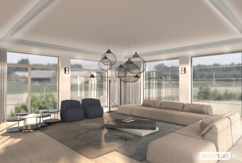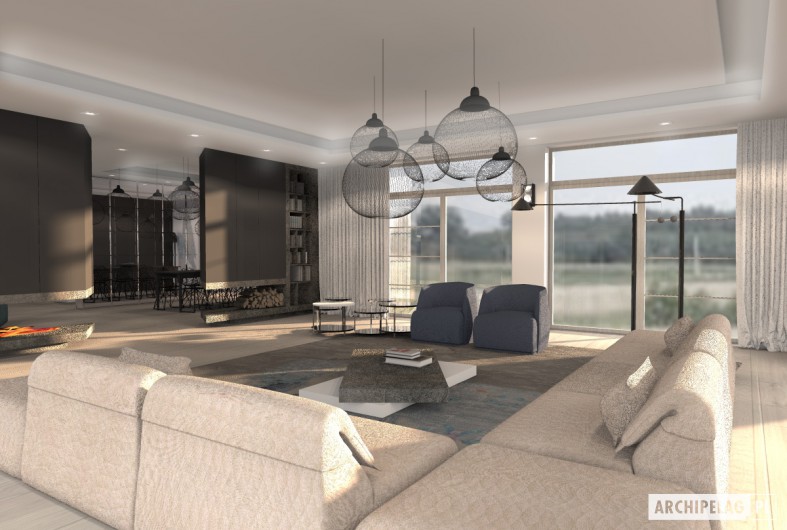 Dom Dionizy G3 z uwagi na swoją powierzchnię i układ funkcjonalny może pełnić rolę podmiejskiej rezydencji. Cechuje go wyraźny podział na strefy. W części dziennej, która znajduje się wyłącznie na parterze znajdziemy nawet salon kominkowy i ogród zimowy. Strefa nocna podzielona jest między kondygnacjami. Na uwagę zasługuje sypialnia na parterze z garderobą i pokojem kąpielowym. Obszerny garaż pomieści trzy samochody. Taras został częściowo zadaszony przeszklonymi pergolami.
