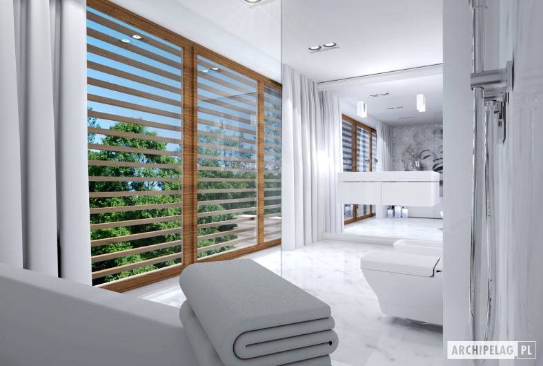 EX3 G1 intryguje oryginalną architekturą. Nowoczesna bryła, innowacyjne zestawienie materiałów oraz ciekawie zaplanowana linia gzymsu to elementy, które tworzą wyjątkowy styl domu. Na szczególną uwagę zasługuje pomysłowo zaakcentowana lukarna, w której zlokalizowano zachwycający salon kąpielowy. Dzięki dużej ilości okien wnętrze domu jest jasne i przytulne. EX3 G1 powstał z myślą o miłośnikach nowoczesnych, stylowych rozwiązań, którzy marzą o atrakcyjnym domu z wyrazistym charakterem.