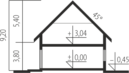 - Kąt nachylenia dachu 45o