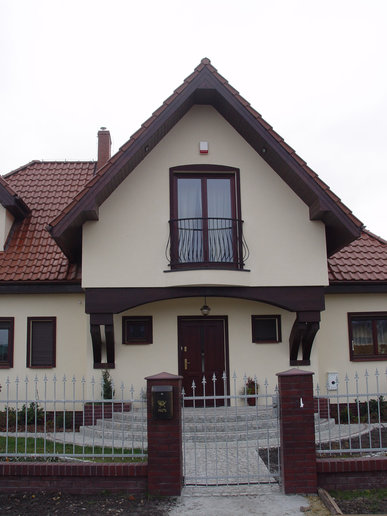 „Amelia” to dom autorstwa arch. Roberta Wójciaka, z użytkowym poddaszem, dla 3-4 osobowej rodziny. Zwartą, klasyczną bryłę budynku urozmaicają dwa wykusze, po jednym od strony elewacji frontowej i ogrodowej. Udało się w nim pogodzić różne funkcje pomieszczeń wynikające ze zróżnicowanych potrzeb mieszkańców. Duże przeszklenia wprowadzające światło dzienne do wnętrza spodobają się wszystkim, którzy lubią jasne pokoje. Cały parter to strefa dzienna gdzie zaprojektowano kuchnię, jadalnię i pokój dzienny. Otwarta przestrzeń tych pomieszczeń i kominek usytuowany w centralnym miejscu domu sprawiają, że wnętrze jest przestronne i funkcjonalne. Interesującym rozwiązaniem jest ażurowa klatka schodowa. Zadbano także, aby sypialnie były przestronne i wygodne. Sypialnie mają kolejno 19,9 ; 14,33 i 13,31 m2. Ich usytuowanie na piętrze daje możliwość wypoczynku nawet w ciągu dnia kiedy na parterze toczy się codzienne życie. Znaczna ilość pomieszczeń gospodarczych, jak również garderób, ucieszy mieszkańców lubiących ład i porządek. Prezentowana realizacja powstała w okolicach Wrocławia. Nie wprowadzano wielu zmian w stosunku do projektu oryginalnego, zmieniono jedynie kształt okien w elewacji ogrodowej oraz wydłużono garaż do zewnętrznej ściany gabinetu, co pociągnęło za sobą zmianę kształtu dachu.