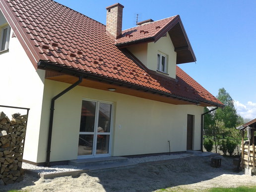 Dobromiła G1 to ciepły i rodzinny dom, w którym każdy poczuje się komfortowo i swobodnie. Dzięki swojej prostej konstrukcji dom jest szybki i tani w budowie. Dużą zaletą projektu jest optymalnie rozplanowany układ pomieszczeń – na parterze mieści się jasna strefa dzienna i gospodarcza, na poddaszu zaplanowano zaciszny azyl nocny. Piękny salon z kominkiem letnią porą harmonijnie powiększa się o przestrzeń przytulnego tarasu, tworząc klimatyczną strefę wypoczynkową.