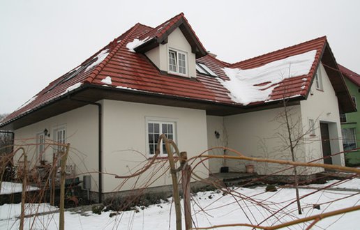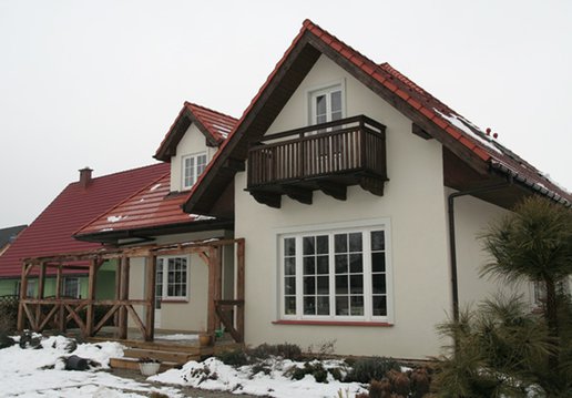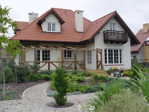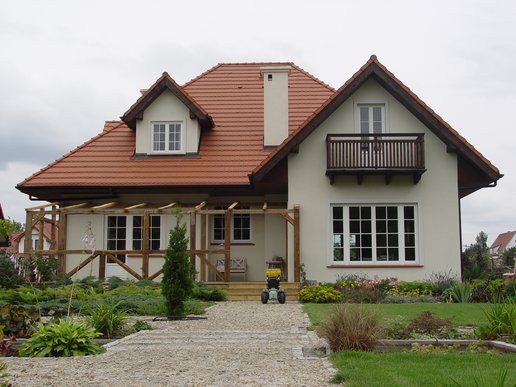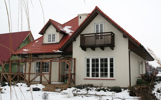 Prezentowana realizacja powstała w okolicach Wrocławia. Wśród zmian wprowadzonych do projektu autorstwa arch. Wojciecha Napierały i arch. Artura Wójciaka wymienić można likwidację okna w wiatrołapie oraz likwidację komina, brak także przypór. Doprojektowana zaś została pergola i balkon, okno na elewacji ogrodowej, a także podniesiono ściankę kolankową. Arch. Jowitta Chmiel-Sobieralska o projekcie: "Ciekawa bryła z bogato rozrzeźbionym dachem czynią dom pełnym uroku. Elewacja wyróżnia się bogatym detalem, w części ogrodowej zaprojektowano kominek zewnętrzny. Wnętrze domu zostało jasno podzielone na strefy. Z części dziennej można dostać się na poddasze: do dużego holu mogącego pełnić funkcję pokoju telewizyjnego, do trzech sypialń i wygodnej łazienki. Ciekawym rozwiązaniem jest pokój gościnny na parterze - z osobną łazienką - mogący pełnić rolę gabinetu lub osobnego mieszkania. Dom wart jest wyboru, ponieważ niewątpliwie zarówno układ pomieszczeń wewnątrz, jak i bryła budynku, zachowując swój charakter, doskonale wpisze się w każdy krajobraz, a także spełni wymagania najwybredniejszych inwestorów."