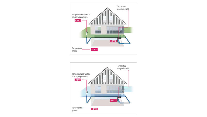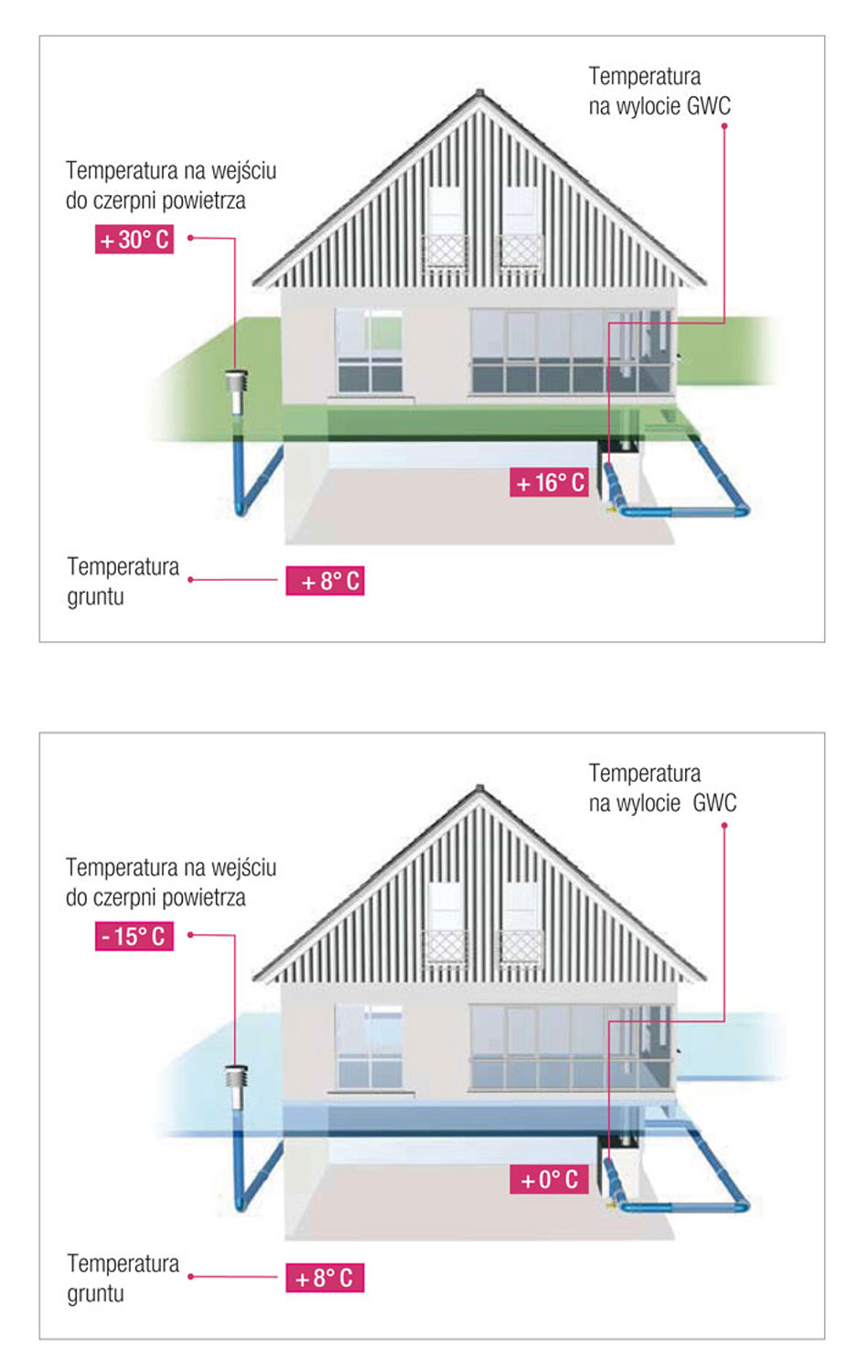 • zdrowa i naturalna klimatyzacja świeżym powietrzem z obniżoną zawartością wilgoci (schłodzenie powietrza zewnętrznego nawet o 20°C)